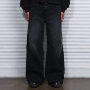 Regular fit. 100% jeans fabric. Front pleat detail. Two side pockets. Front patch pocket. Belt loops. The model is 185 cm tall and is wearing a size M,L,XL,XL